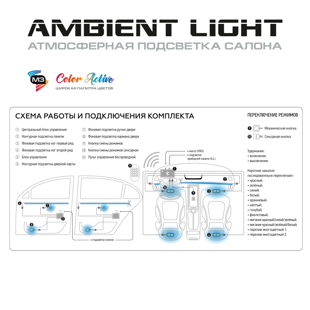 Назначение: декоративная и функциональная подсветка салона автомобиля