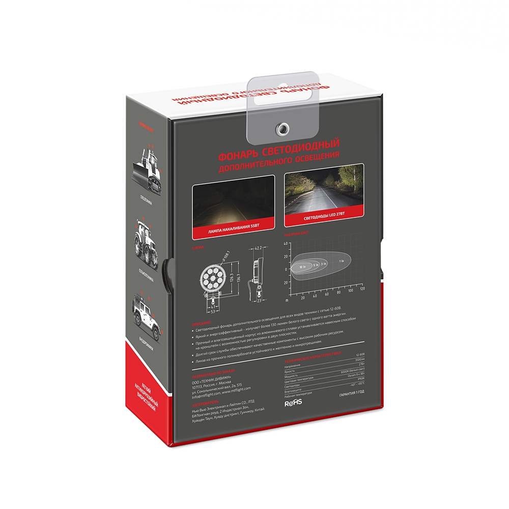 Фонарь светодиодный MTF LIGHT дополнительного освещения 12-60В, 27Вт, 3500лм, 6000К, круглый, шт.