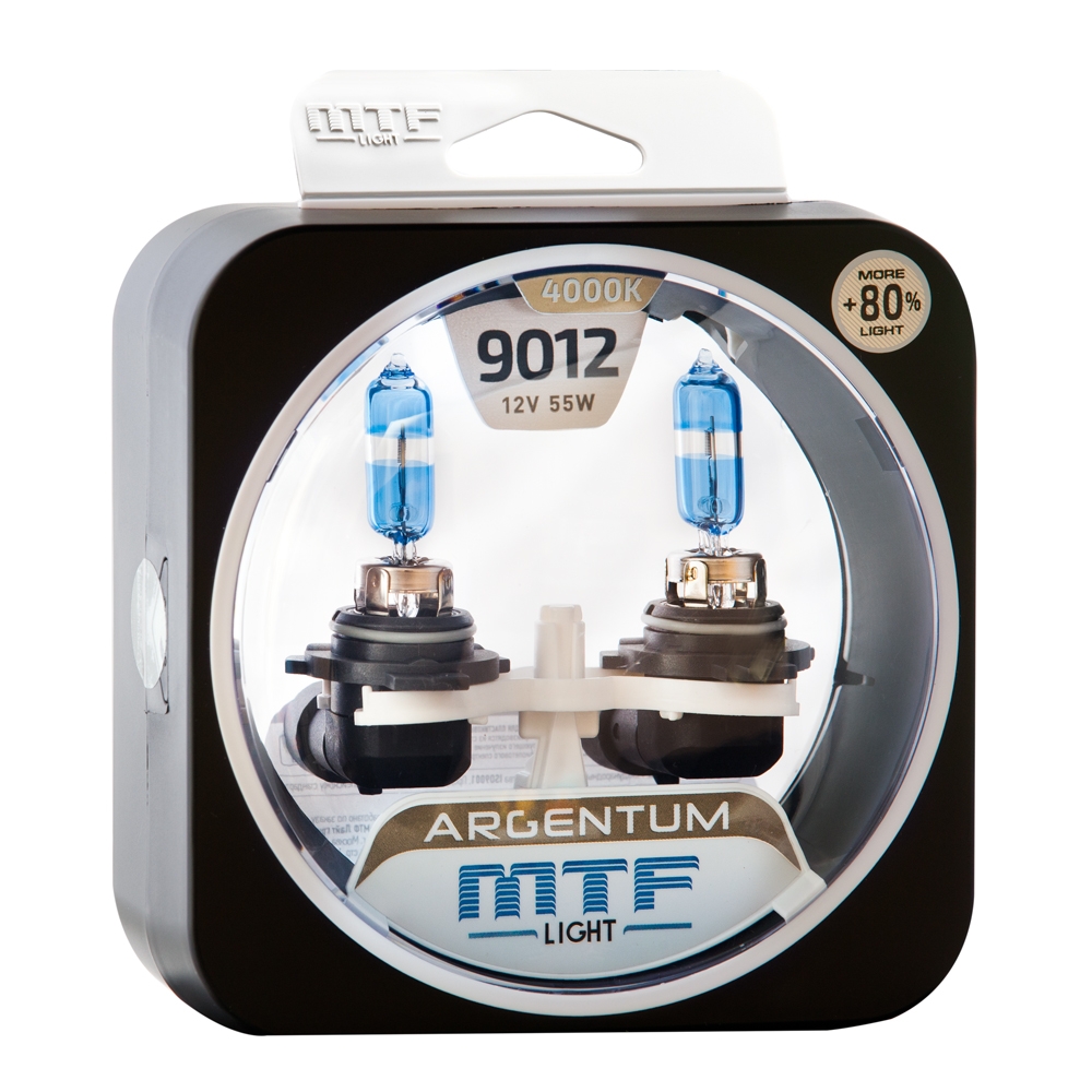 MTF Light ARGENTUM +80% — серия галогенных ламп с усиленной яркостью и белым светом. Цветовая температура ~3900K, питание 12В, мощность 55Вт. Совместимы с цоколями H1, H3, H4, H7, H8, H9, H10, H11, H16, H18, H19.