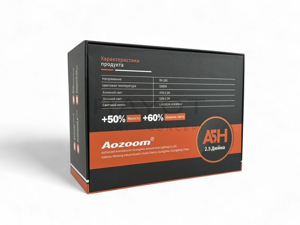 Линза Aozoom A5H 2024, 3.0", 12V, 47W/53W, 5500K, 4000/4300 лм