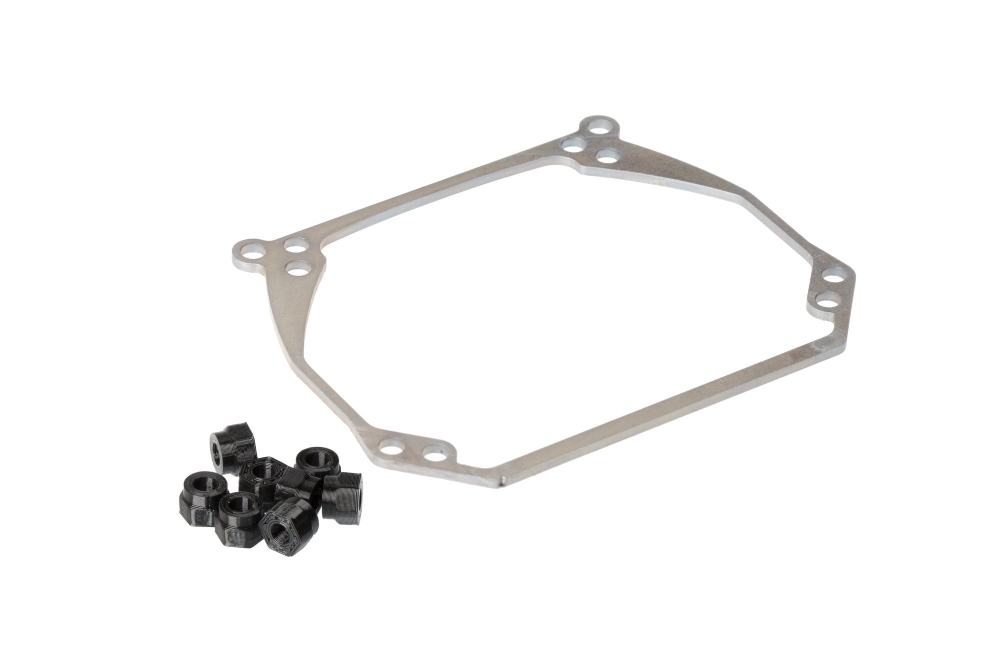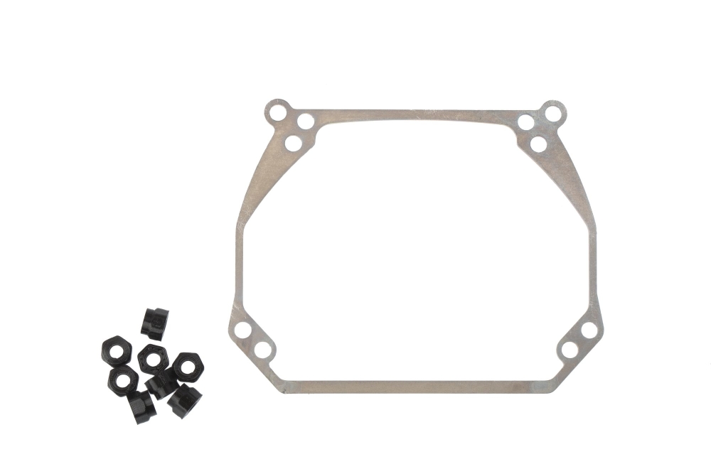 Конструкция адаптера выполнена из стали толщиной 2 мм методом прецизионной лазерной резки. Изделие обеспечивает жесткую фиксацию нового модуля на подвижной платформе фары, что позволяет полностью сохранить работу систем автоматического корректора и динамического адаптивного освещения (если автомобиль оснащен функцией поворота линз). Использование конструкционной стали исключает деформацию крепежа под весом современных Bi-LED модулей и нивелирует вибрацию светотеневой границы (СТГ).
