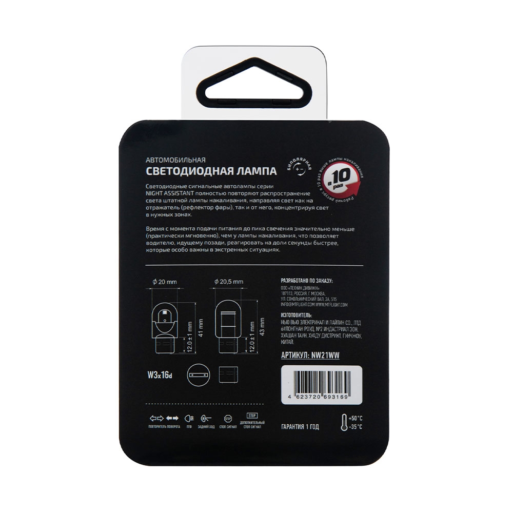 MTF Light Night Assistant W21W LED — это светодиодная автолампа для габаритных огней и дополнительного освещения. При мощности всего 2.5 Вт она обеспечивает яркий белый свет, улучшая видимость и безопасность автомобиля. Лампа отличается низким энергопотреблением, долговечностью и поставляется в блистерной упаковке поштучно.