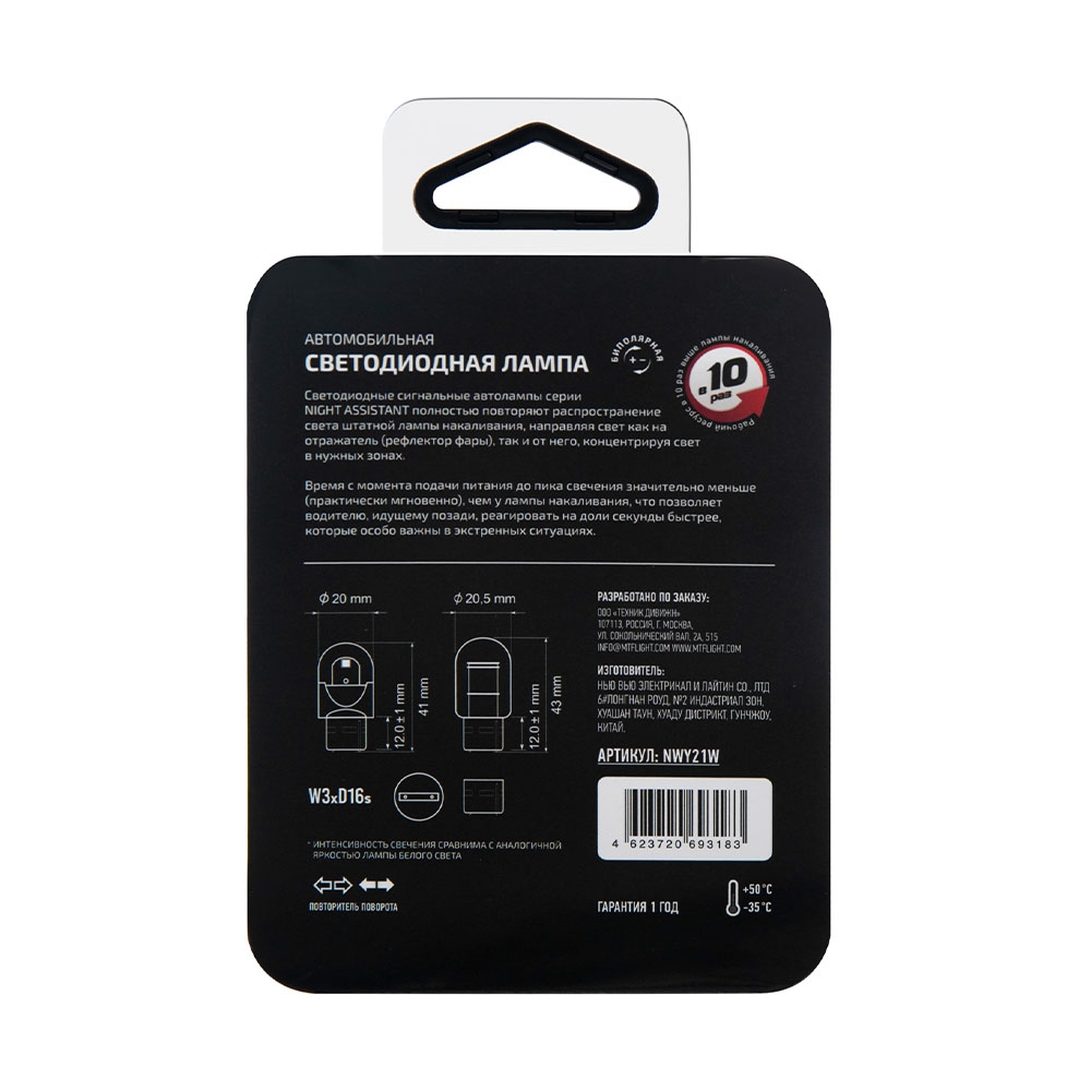 MTF Light Night Assistant W21W LED (янтарный) — это светодиодная автолампа для поворотных сигналов и габаритных огней. При мощности всего 2.5 Вт она обеспечивает яркий янтарный свет, повышая безопасность и заметность автомобиля. Лампа отличается низким энергопотреблением, долговечностью и поставляется в блистерной упаковке поштучно.