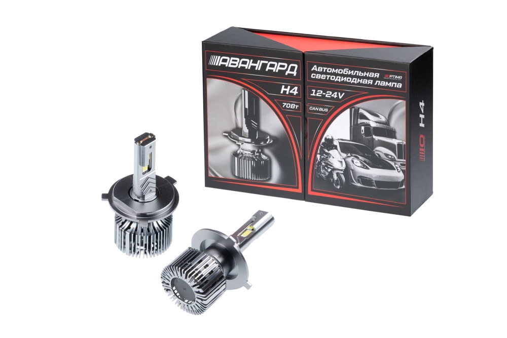 Optima Premium LED АВАНГАРД H4 (5500K) — это светодиодные лампы из серии Premium LED АВАНГАРД, разработанные для замены штатных галогенных источников света H4. Они обеспечивают яркий белый свет с температурой 5500K, световой поток 6800 Lm и стабильную работу в диапазоне 12–24V при мощности 70W. Лампы создают премиальное освещение дороги и подчёркивают современный стиль автомобиля. Поставляются в комплекте из двух штук.