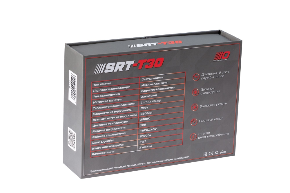 Optima Premium LED SRT HB3/9005 (5500K) — это светодиодные лампы из серии Premium LED SRT, разработанные для замены штатных галогенных источников света HB3/9005. Они обеспечивают яркий белый свет с температурой 5500K, световой поток 2800 Lm и стабильную работу при 12V с мощностью 30W. Лампы создают комфортное освещение дороги и подчёркивают современный стиль автомобиля. Поставляются в комплекте из двух штук.