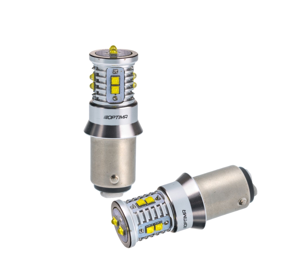Optima Premium MINICREE P21/5W (1157) — двухконтактная светодиодная лампа для задних фонарей автомобиля.