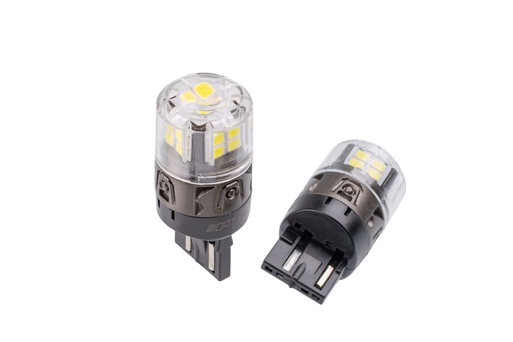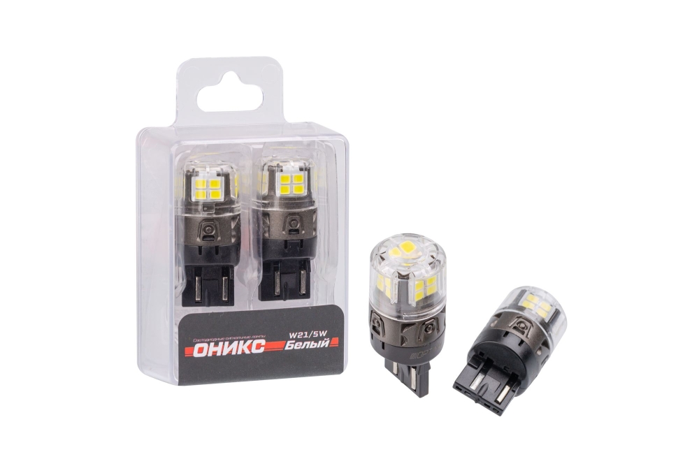 Optima Premium 7443 (W21/5W) LED ОНИКС WHITE — светодиодная лампа для задних фонарей автомобиля с двухрежимным свечением.