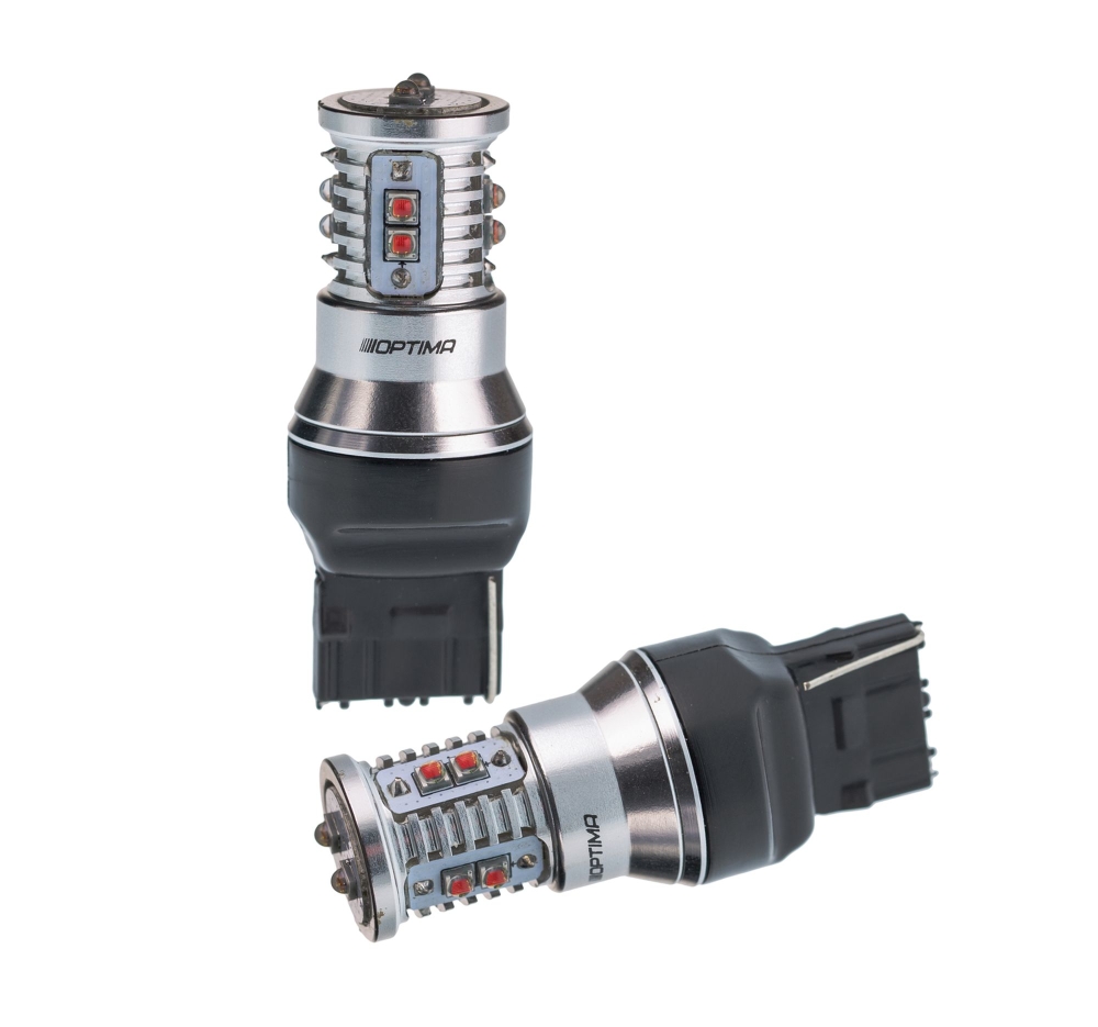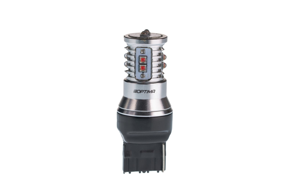 Optima Premium MINICREE W21W (7440) RED CAN — мощная светодиодная лампа для стоп‑сигналов и задних фонарей.