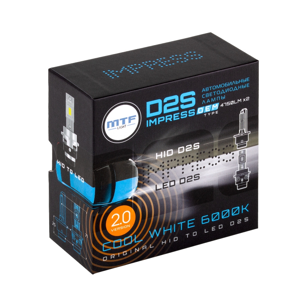 Светодиодные лампы D2S MTF Light серия IMPRESS OEM LED D2S, 35W, 4750LM, 6000K