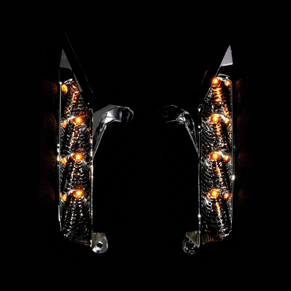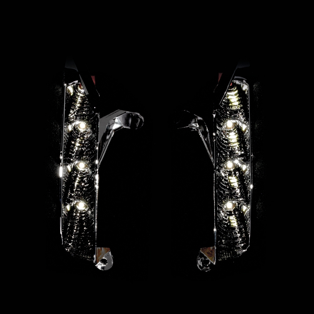 - Встроенная двухцветная подсветка — белая для ДХО, жёлтая для поворотников